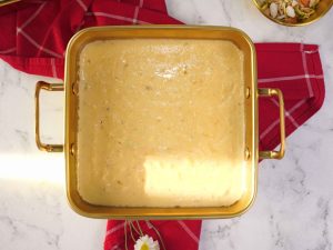 -Turn off the flame,add khoya,cream,pistachios,cashew nuts,almonds,kewra water & mix well,turn on the flame & cook on medium flame for 2-3 minutes.