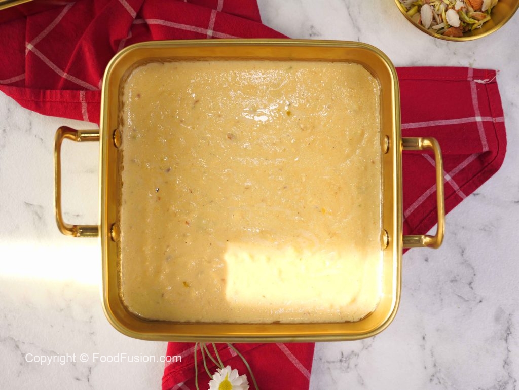 -Turn off the flame & let it cool while mixing (8-10 minutes).Rabri is ready!