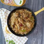 -Green chillies, orange food color, fried onion, lemon slices, fresh coriander, mint leaves dalain, phir kitchen cloth aur lid se cover kar ke dum par 10-12 minutes paka lein.