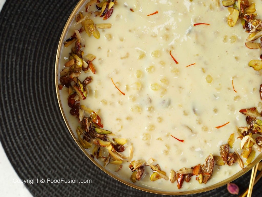 -Doodh dal kar mix karein aur ubal anay dein aur medium flame par 10-12 minutes tak pakayein jab tak sagudana transparent ho jayein.