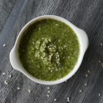 Grinder mein podina,hara dhania,hari mirch,safed til,lehsan paste,namak,cheeni,lemon juice aur pani dal ker ache tarhan grind ker lein.