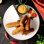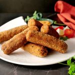 Now coat fingers into all-purpose flour then dip into whisked egg and coat with breadcrumbs and roll again on working surface to maintain its shape (makes 14-15) and freeze for 30 minutes.