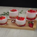 -Serving glass mein strawberry & jelly mixture,biscuit crumbs,tayyar strawberry cream mixture aur strawberry & jelly mixture dal dein.