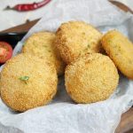 -Coat stuffed onion rings with all-purpose flour then dip in whisked egg & coat with breadcrumbs then again dip in whisked egg & coat with breadcrumbs (makes 10-12).