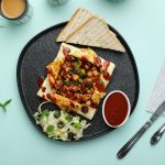 -On serving plale,place stuffed omelette,cut the omelette from the center in plus shape & open it.