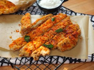 Ek plate mein beaten anda dalein, chicken ko pehle anday mein dip karen phir potato starch mixture se achi tarah coat karlen.