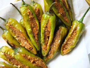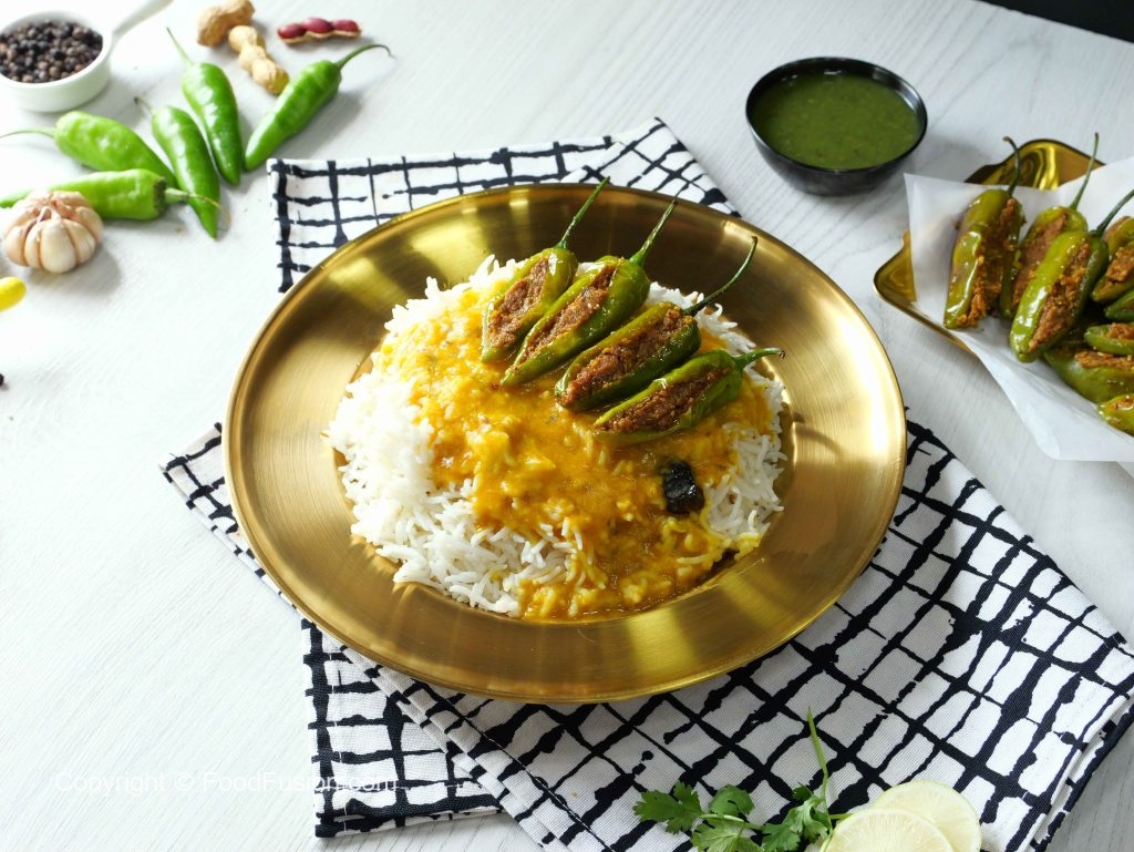 -Hari mirch ko beech se cut ker lein aur tayar filling bhar dein.