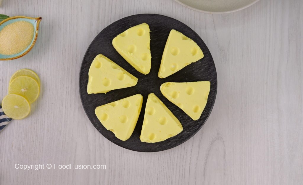 -Pipeout prepared cream cheese mixture in a silicon cheese shape mold & let it set for 2-3 hours in freezer or 8 hours in refrigerator.