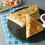 Leftover tortilla ya roti ko ek ka upper ek rakh dein aur aloo filling dal ker triangle shape mein pheela lein.