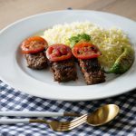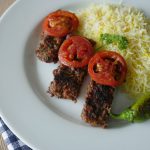 Serve Turkish kabab with rice,tomato & green chilies.