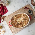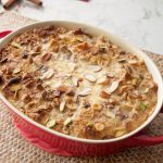On baking dish,break puff pastry into pieces,sprinkle cinnamon powder,desiccated coconut,raisins, hazelnuts,walnuts,pistachios,prepared milk,topped with cream and sprinkle almonds.