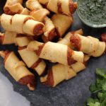 -Roll out each triangle i-e from outer side towards inner side like a croissant shape & seal the end properly (makes 36).