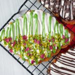 -Grinder mein pistachios,cream,condensed milk,lemon juice,pink salt aur green food color dal ker grind karein.Pistachio ganache tayar hai & piping bag mein dal dein.